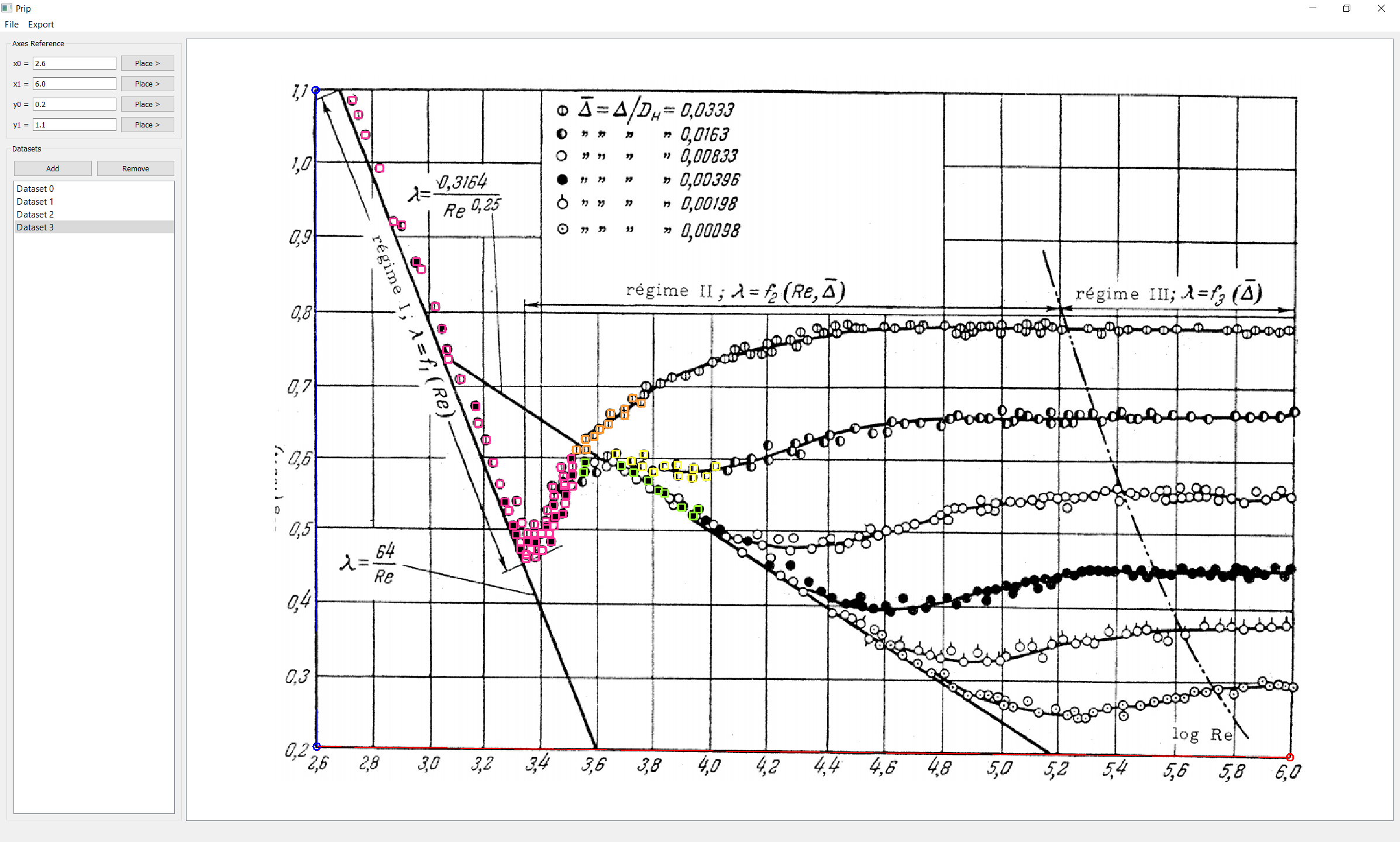 PRip is a tool for digitizing scientific plots and graphs, getting numeric data. It works similarly to the popular g3data application, but has a greater enphasis on usability, precision and portability.